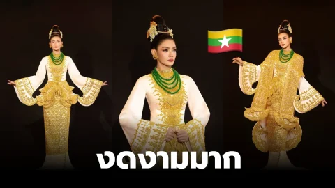 ชุดประจำชาติของมิสยูนิเวิร์สเมียนมา ซึ่งต้องขอบอกว่าชุดที่เธอสวมใส่นั้นงดงามมากจริง ๆ ค่ะ ทั้งดูสง่างาม เลอค่า และมีความประณีตในทุกรายละเอียด
