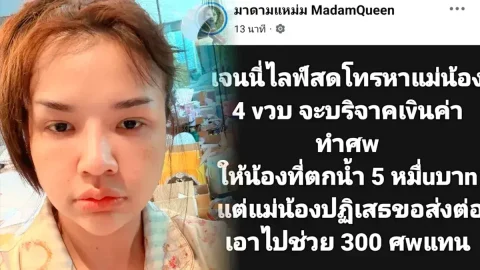 เจนนี่ไลฟ์สดโทรหาแม่น้อง 4 ขวบเงิน ให้น้องที่ตกน้ำ 5 หมื่นบาท แต่แม่น้องปฏิเสธขอส่งต่อเอาไปช่วย 300 ศwแทน